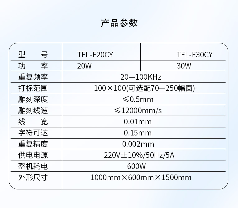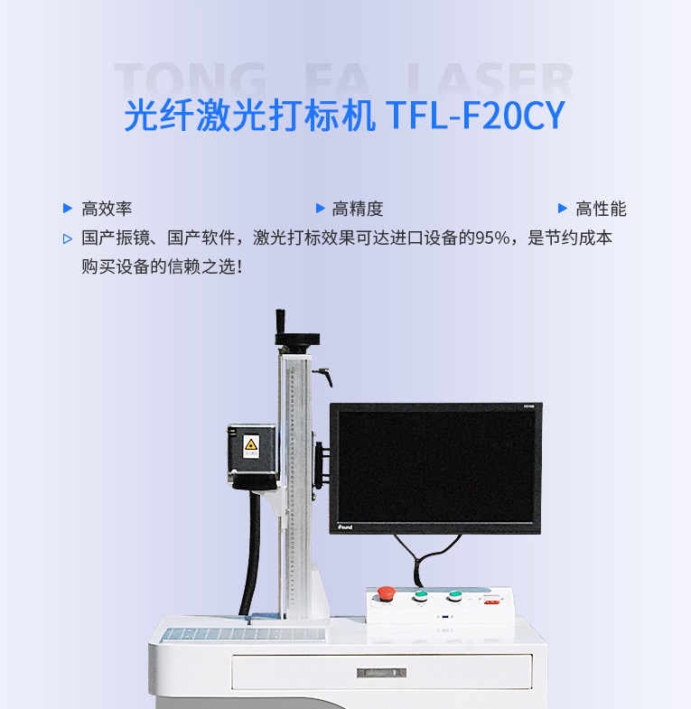 通發(fā)激光研發(fā)TFL-F20CY激光打標(biāo)機(jī),金屬材料和塑膠材料都進(jìn)行打標(biāo)加工,本激光鐳雕機(jī)配置成熟的20W和30W國產(chǎn)光纖激光器,國產(chǎn)振鏡、國產(chǎn)軟件,性價(jià)比高,激光打標(biāo)效果可達(dá)進(jìn)口設(shè)備的95%,是節(jié)約成本購買設(shè)備的信賴之選!
