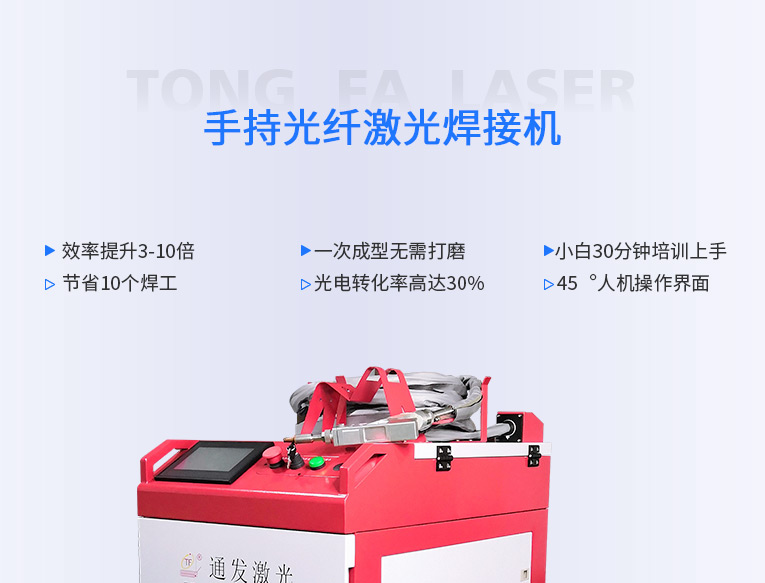 通發(fā)激光一體式手持式激光焊接機(jī),用手持式焊接槍替代以前固定光路,手拿焊接,靈活方便,焊接距離更長,克服工作臺空間的局限性,工件尺寸不統(tǒng)一時無法自動焊接的情況下使用。主要針對大型工件、固定位置如內(nèi)直角、外直角、平面焊縫焊接、焊接時熱影響區(qū)域小,變形小、而且焊接深度大,焊接牢固。是遠(yuǎn)距離焊接大工件的較為靈活的全新的焊接工藝。